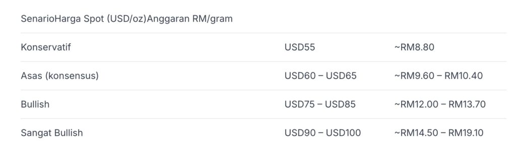 🔮 Jangkaan Harga Perak 2026 (Spot Global → RM)
