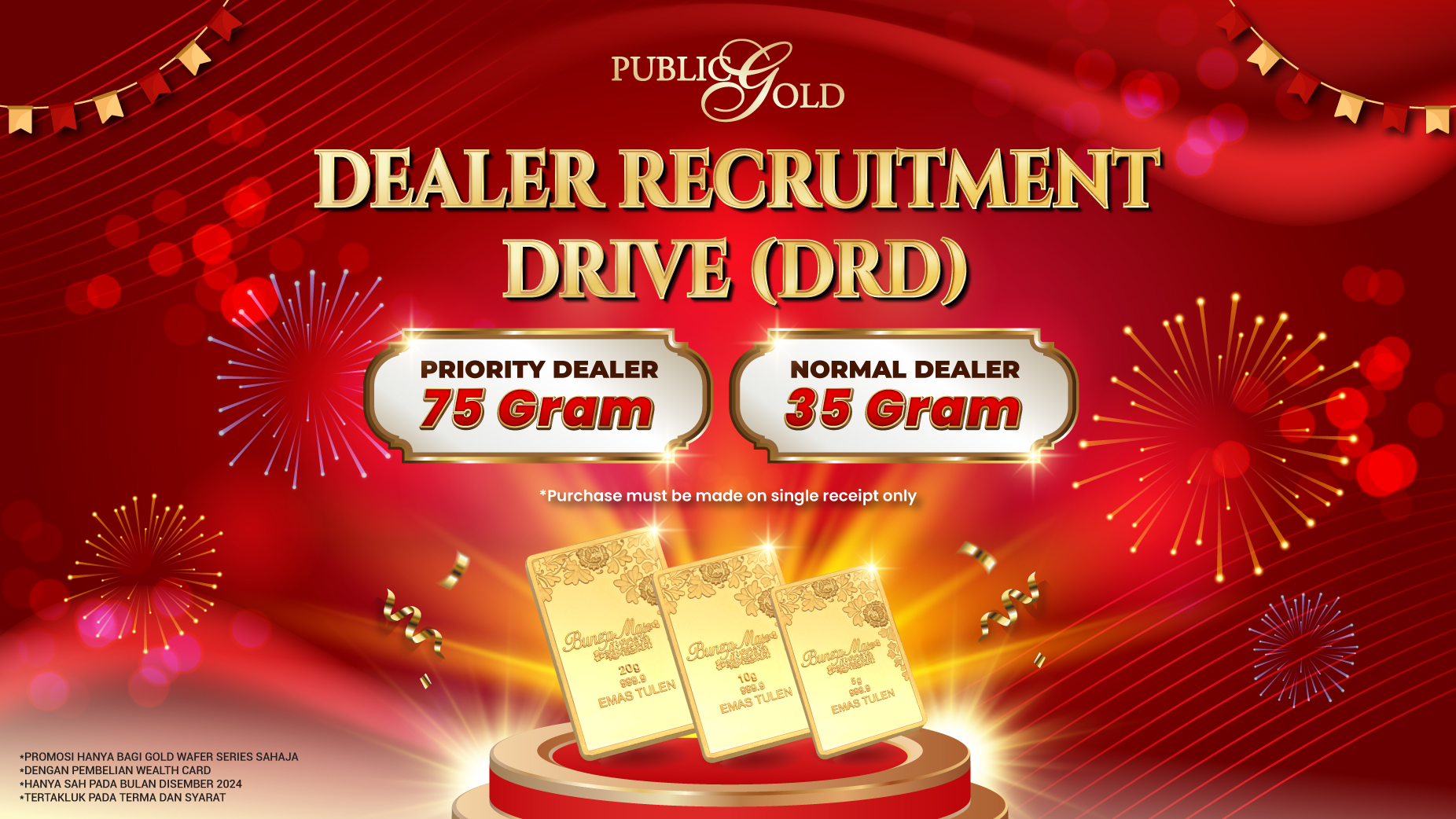 Setiap pembelian promosi perlu disertakan dengan pembelian Wealth Card 0.5 gram sebagai kelayakan untuk menjadi dealer. Klik butang dibawah untuk info promosi terkini.